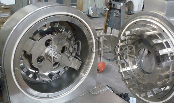 本機的工作原理是物料進入粉碎室,在高速旋轉的活動齒盤與固定齒盤間受齒的沖擊、剪切、磨擦及物料間的相互撞擊的作用下被粉碎,經篩網篩選后即成為所需的粉料。